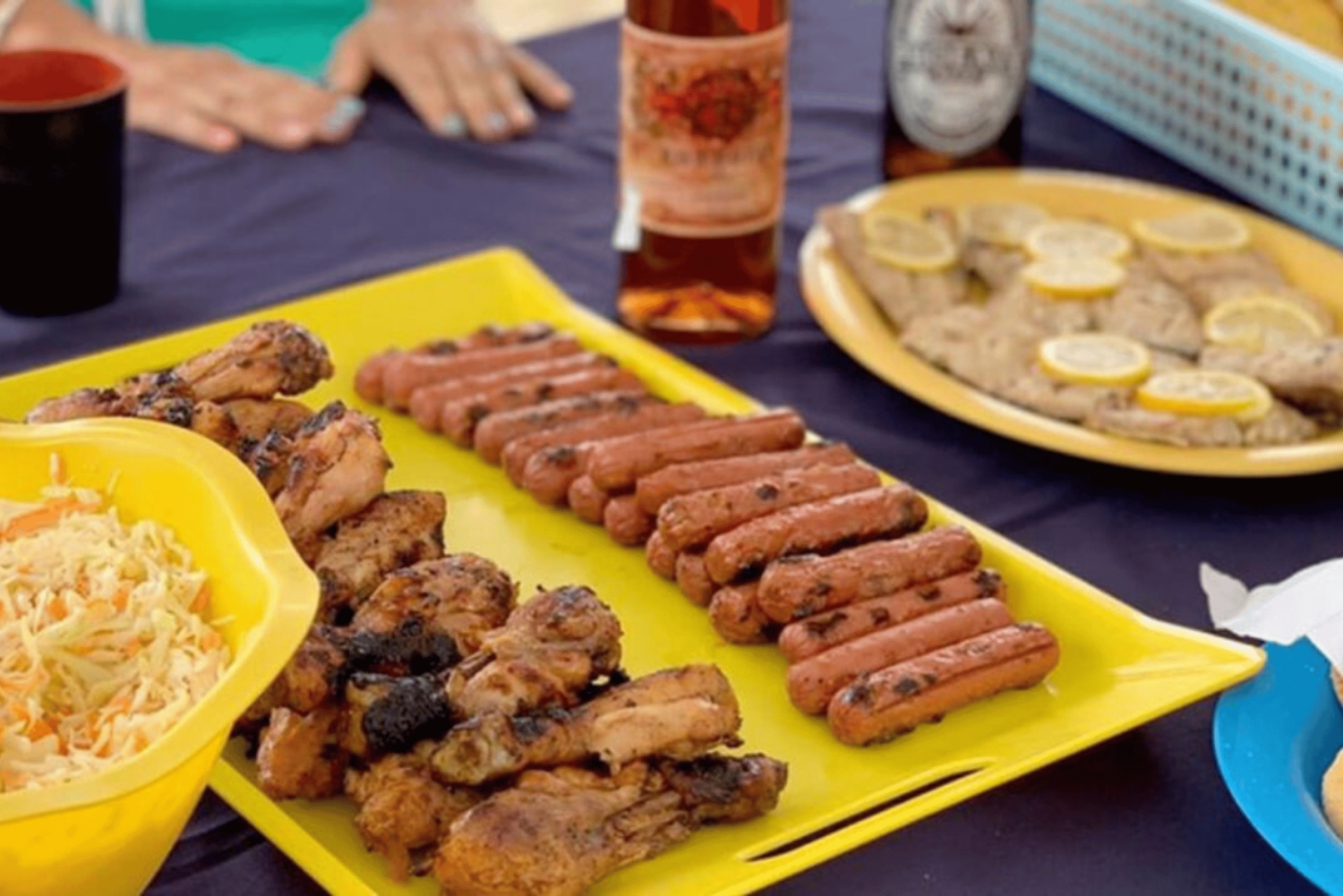 Después de nadar, te dirigirás al islote Benitier para saborear un almuerzo a la barbacoa recién hecho, Los maravillosos cocineros empezarán a preparar el almuerzo en cuanto llegues a la isla, y en menos de una hora estarás comiendo un delicioso menú de Marisco y Pescado a la Parrilla, Pollo, Salchichas, Pan de Ajo, Ensaladas, Postre: Flambe de Plátano. Tendrás una amplia selección de Bebidas locales ilimitadas que estarán disponibles en la isla.