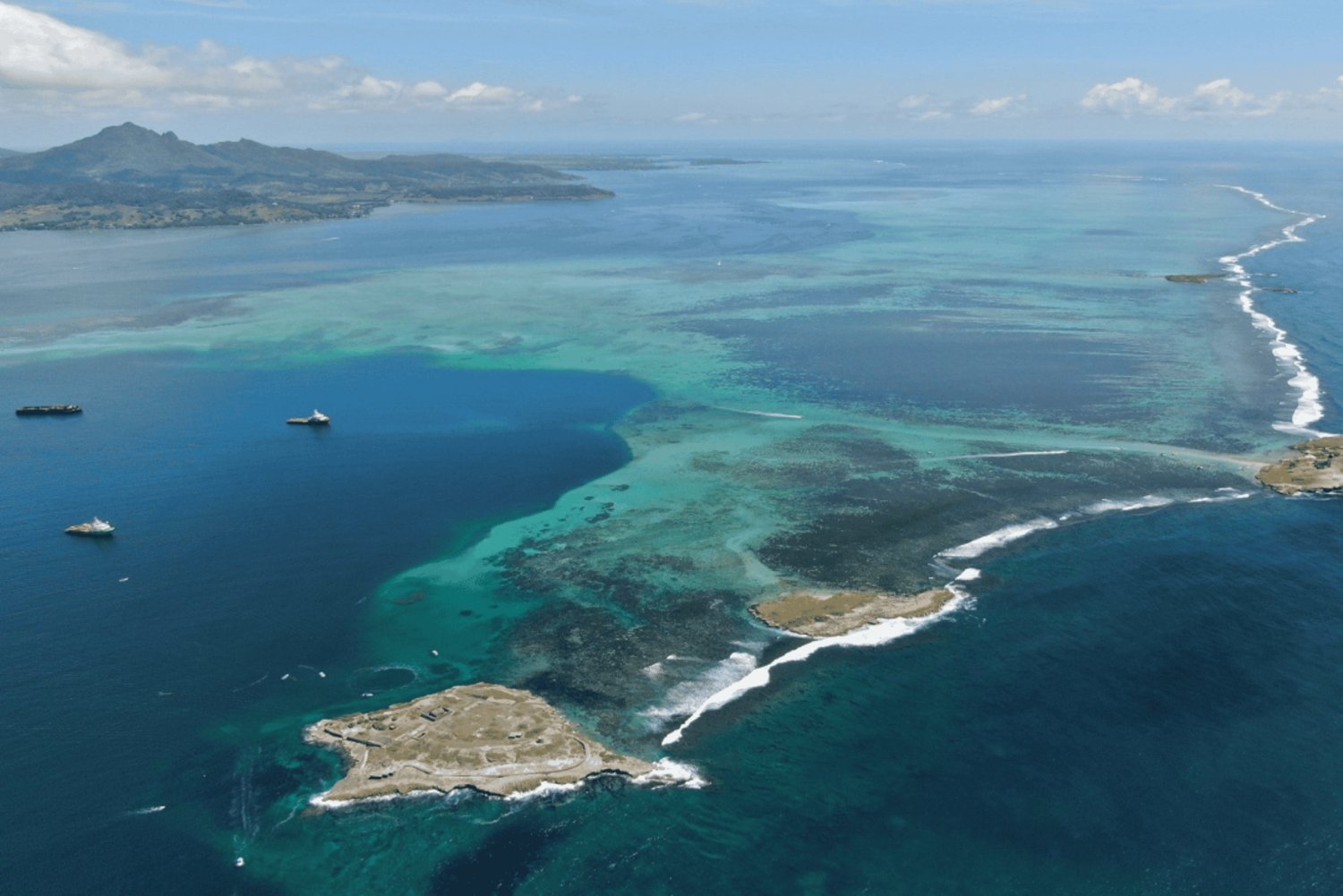 Ensimmäinen pysähdyspaikka on Ile aux Cerfs -saari, jossa vierailemme 45 minuutin ajan ja nautimme virvokkeita. Sen jälkeen suuntaamme Grand River South East -saarelle nauttimaan näkymistä vesiputoukselle, joka virtaa Intian valtamereen. Siellä sinulla on mahdollisuus tavata ja ruokkia villejä mauritiusapinoitamme. Seuraavaksi lähdemme Ile aux Pharesille, jonka jälkeen suuntaamme Blue Bayhin ohittaen samalla Ile de La Passen. Nauti unohtumattomasta snorklauksesta eksoottisten trooppisten kalojemme kanssa Blue Bayn meripuistossa. Näet myös delfiinejä ja merikilpikonnia.