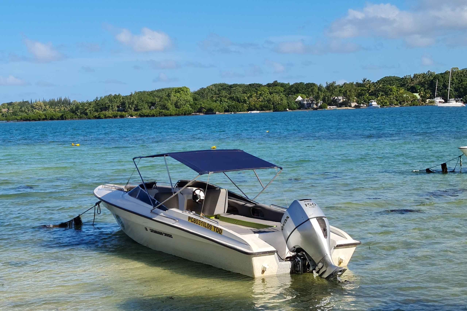 Matkusta Trou d'Eau Doucesta Ile aux Cerfsille opastetulla matkalla pikaveneellä ja ihaile kauniita rannikkomaisemia.
