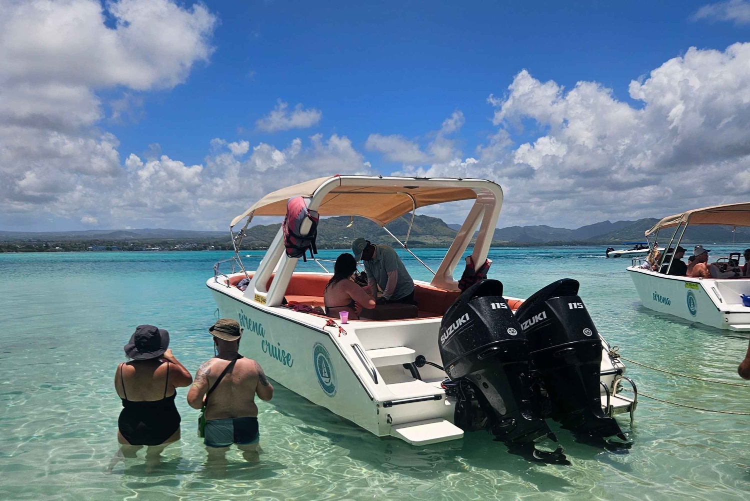Il motoscafo scivolerà nelle acque cristalline della laguna alla velocità che preferisci per visitare la famosa cascata di Grand River South East, dove potrai vedere le scimmie nel loro habitat naturale e scoprire le bellissime isole (Ile aux Cerfs, Ile aux Flamants, Ile aux Phares, Ile de la Passe, Ile aux Aigrettes) e fare snorkeling nei posti migliori. Il nostro team di professionisti farà in modo che questa sia la tua escursione migliore durante le vacanze a Mauritius. È un vero e proprio charter privato, il che significa che il motoscafo sarà a tua disposizione per tutta la giornata. Hai il lusso di decidere quanto tempo vuoi passare in spiaggia, fare una passeggiata, nuotare nella laguna, fare snorkeling, rilassarti sulla spiaggia, trascorrere del tempo su qualsiasi isola a tua scelta o rilassarti sul nostro motoscafo. Questo pacchetto include anche il BBQ all'ora di pranzo, incontrerai i nostri chef sull'isola dove ti serviranno un delizioso BBQ che comprende: pane all'aglio, insalate miste, salsicce, pollo, filetti di pesce e dessert (banane flambé o ananas locale). Le bevande incluse sono acqua in bottiglia, succo di frutta, bibite, vino bianco, vino rosé e rum.