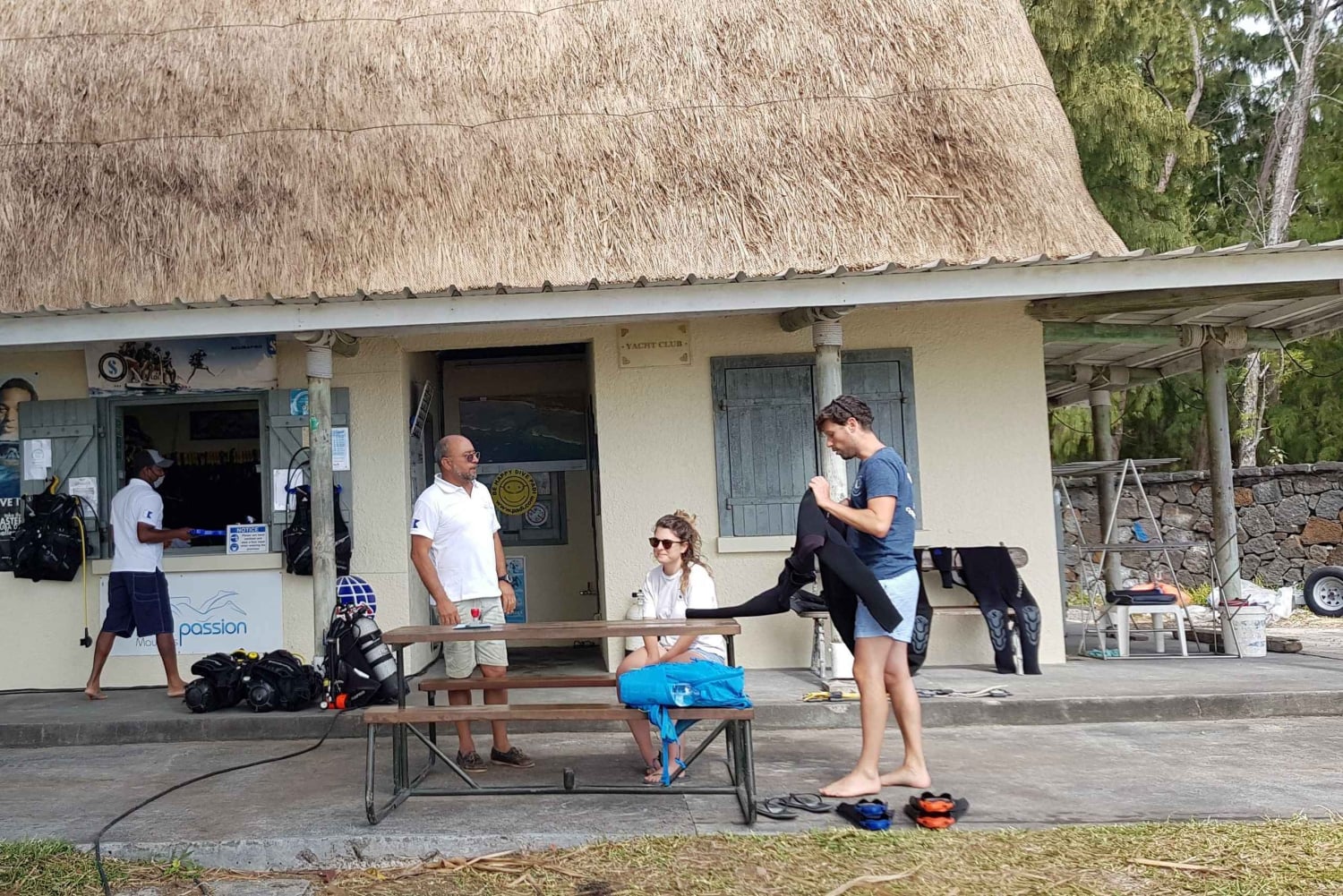 ダイビングは、ベル・マールの最も美しいスポットで、ボートで10分程度の場所にあり、認定インストラクターが指導します。Scubaproの器材は用意されており、2~3日間で自分のペースに合わせてトレーニングを進めることができます。