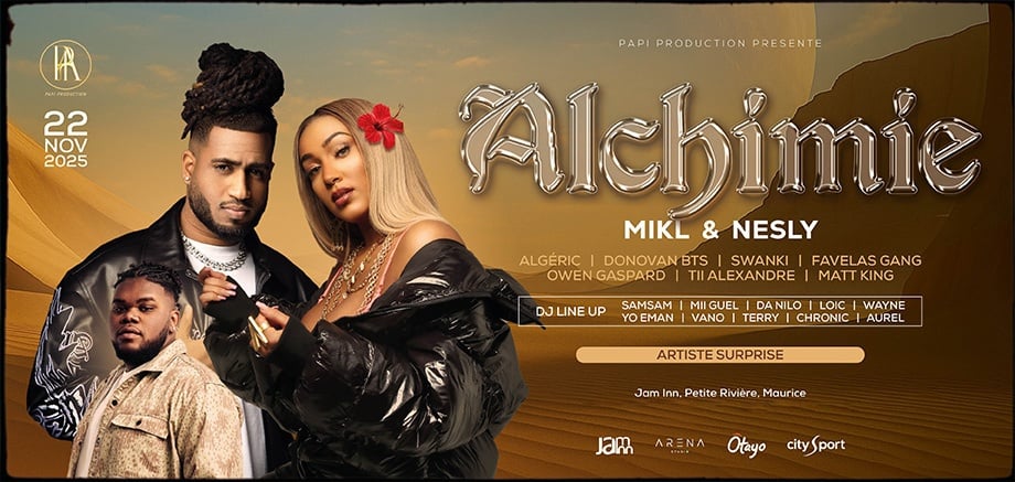 Maar de avond eindigt daar niet - Algéric, de rijzende ster van Reunion, betreedt het podium voor zijn allereerste concert in Mauritius, waarbij hij nummers van Mon Rêve uitvoert, inclusief zijn hit 'Atassé' met Donovan BTS. Voeg Swanki, Favelas Gang, Owen Gaspard, Tii Alexandre, Matt King en verrassingsgasten toe, en je hebt een line-up boordevol eilandwarmte en goede vibes.